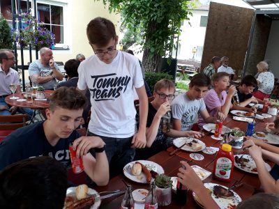 Der Dressensponsor der U15, Michi Rauch, Inhaber des In-Treffs Caligo in Eichgraben, lud „seine“ Burschen zu einem Abschlussfest in sein Lokal. Die Spieler wurden in gemütlichem Ambiente mit Grillspezialitäten verwöhnt. Ein gelungener Abend, für den sich die U15 Mannschaft herzlich bedankt!!!