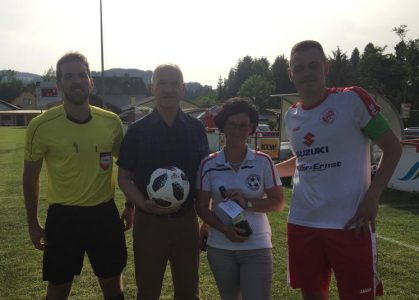 Den Ehrenanstoß und die Matchballspende für das Heimspiel gegen den SC St.Pölten nahm der ehemalige Rapid-Spieler Herwig Tercek vor.