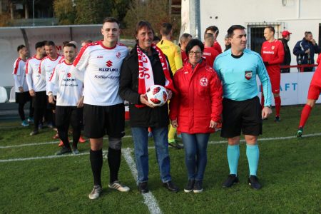 Für die Kampfmannschaft war mit Hafnerbach auch gleich der direkte Titelkonkurrent zu Gast. Die Matchpatronanz für das Spiel und den Ehrenanstoß übernahm Gemeinderat Andreas Höbart.