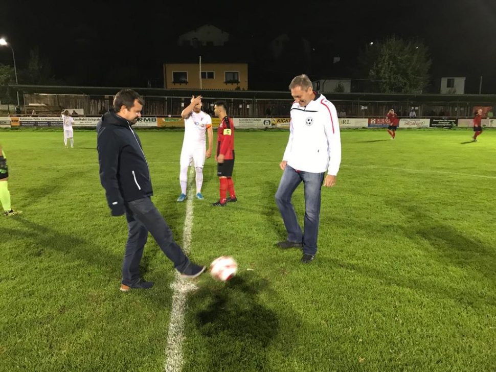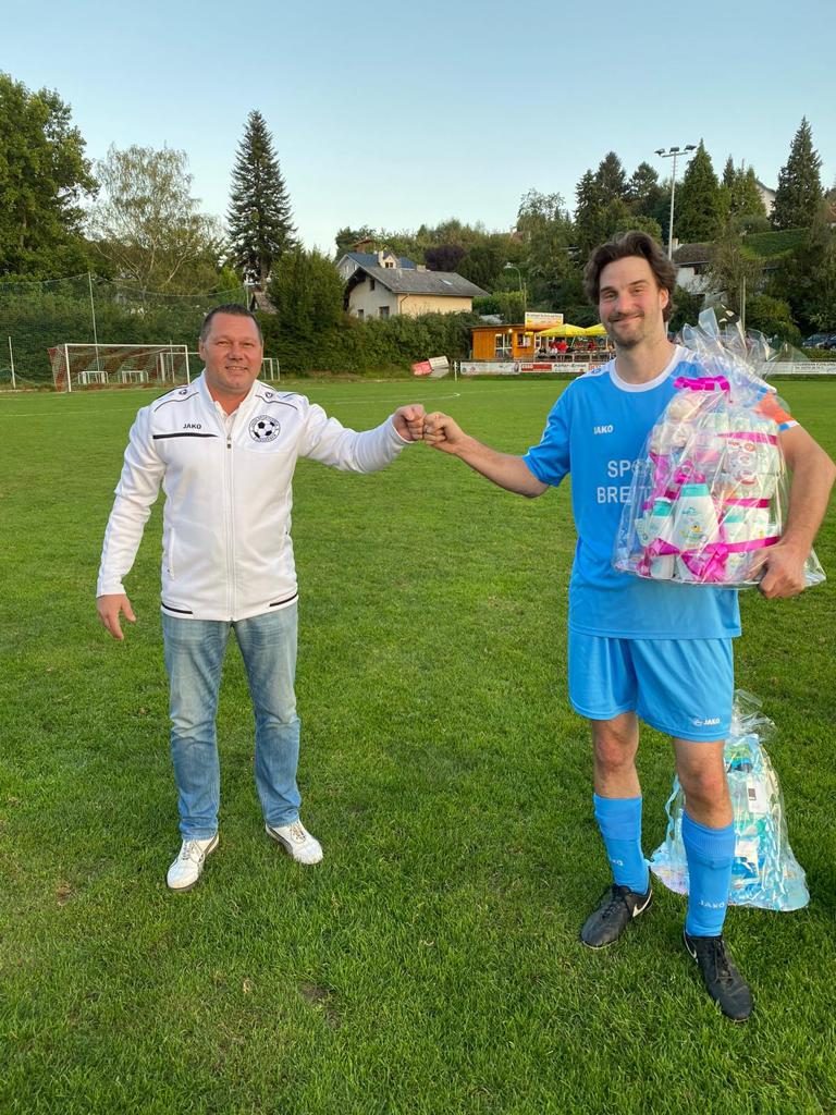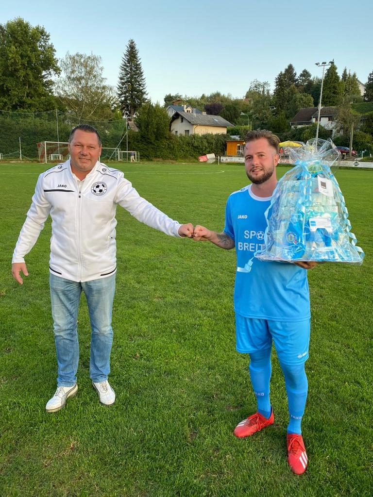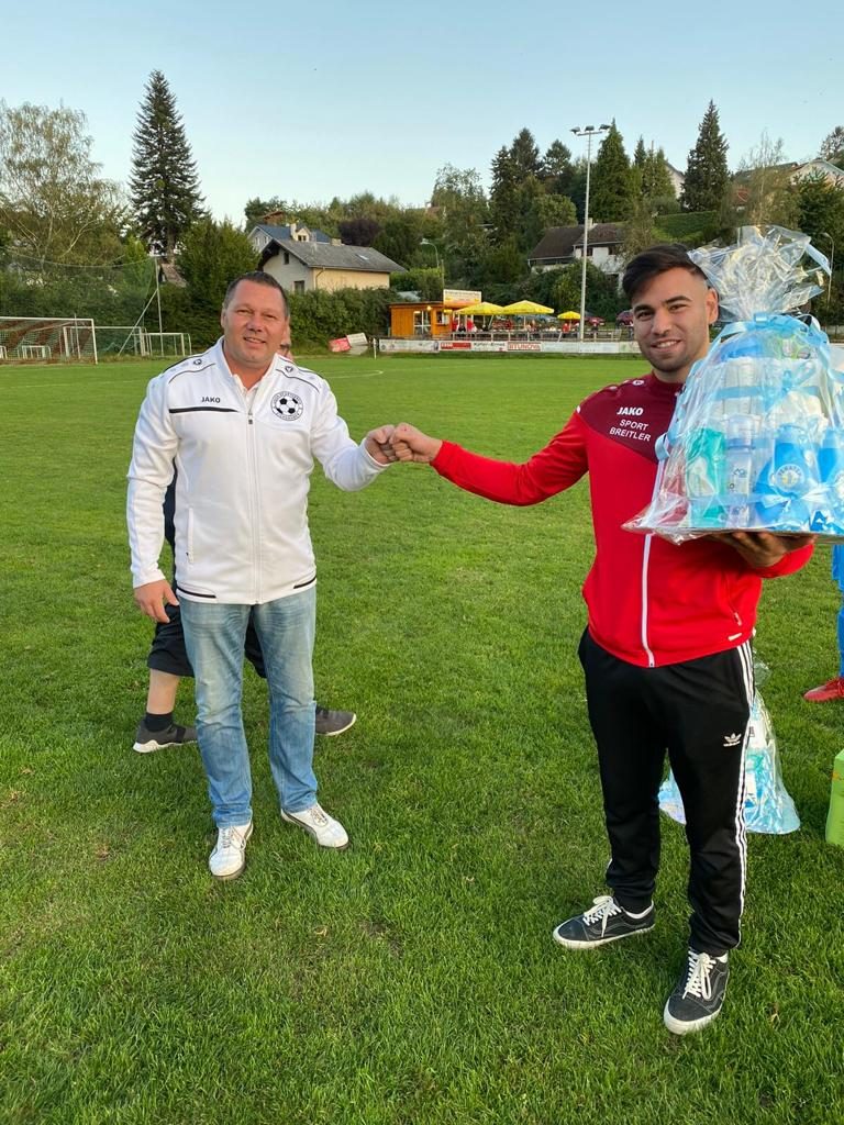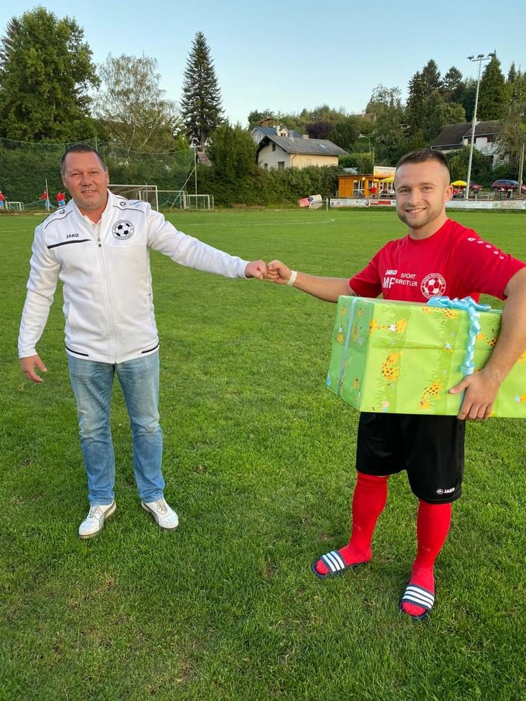 Vor dem Spiel gratulierte USV Eichgraben Obmann Dejan Stajkovic allen Spielern, die letzter Zeit Papa geworden waren mit einem Präsent.