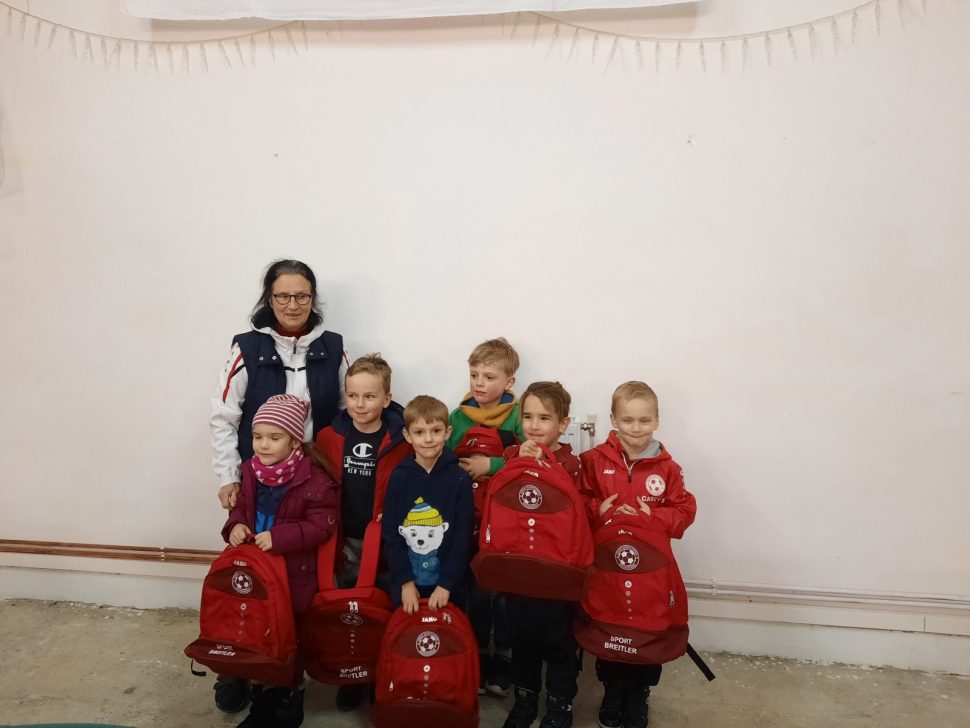 Unsere Kindergarten-Kids wurden mit neuen Rucksäcken ausgestattet. Auch die U8 freute sich über neue Rucksäcke! Die U9 ist ab sofort auch bei Regenwetter bestens im Vereinslook ausgestattet.