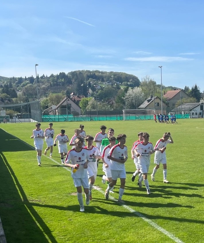 Trotz drei verletzter Spieler und zwei weiterer kurzfristiger Ausfälle wollte sich unsere U16 heute beim ASV Spratzern für die bittere 1:3 Niederlage im Hinspiel revanchieren. Und so startete unsere Mannschaft hochmotiviert in das Spiel. Nach dem ersten Abtasten gab es dann sowohl auf unserer Seite als auch aufseiten des ASV Spratzern je eine gute Torchance. Während aber Spratzern eher tiefstehend auf die Konterchance lauerte bot unsere Elf mit sehenswerten Kombinationen und wirkungsvollem Pressing wirklich feinen Fußball – der in der 22. Minute auch belohnt wurde: David Rikert kam zum Abschluss und stellte auf 1:0! Das gab unseren Jungs dann nochmals Auftrieb und es folgten einige weitere Chancen, die aber allesamt nicht verwertet werden konnten. So ging es mit dem 1:0 in die Pause.