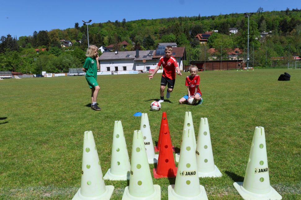 Zeitgleich wurden am Sportplatzgelände Bewegungsstationen angeboten an denen alle Besucher*innen ihre fußballerischen und koordinativen Fähigkeiten ausprobieren konnten.