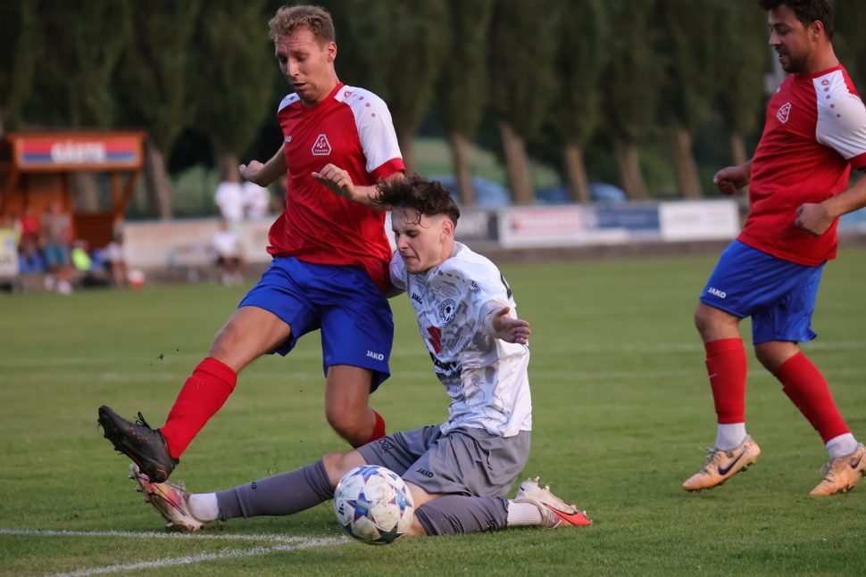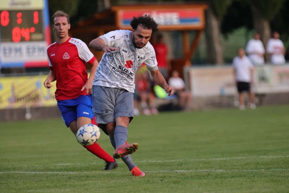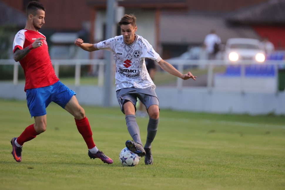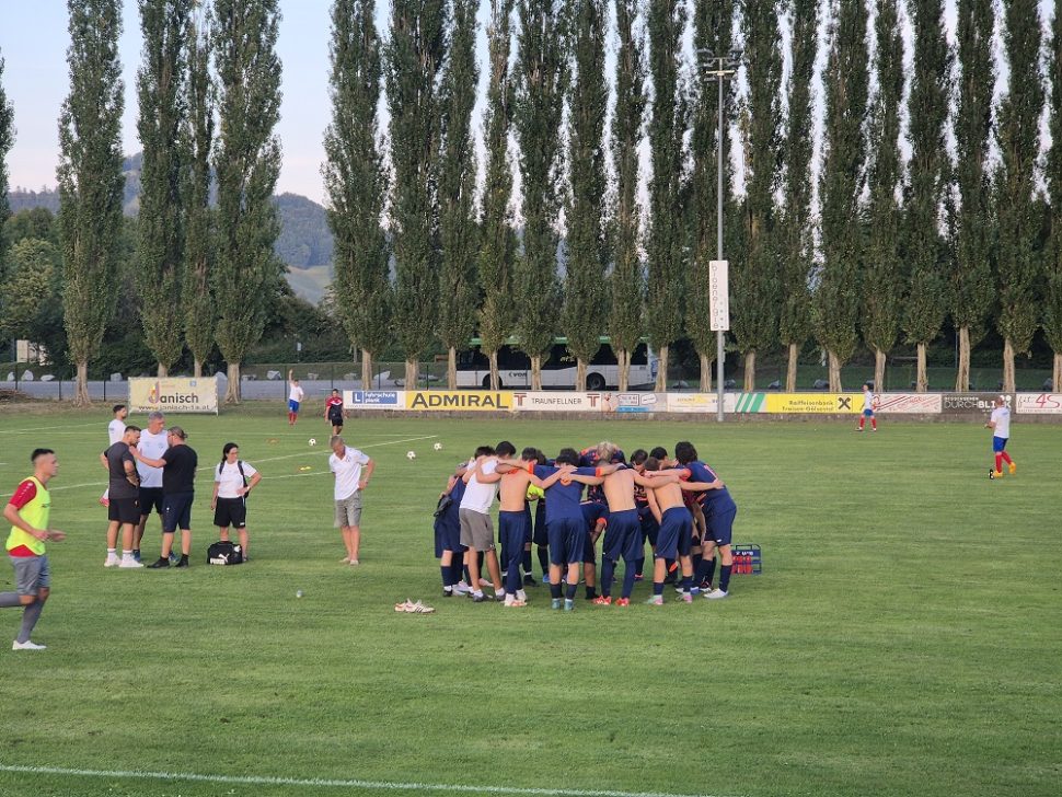 Unsere U23 beginnt trotz der hochsommerlichen Hitze stark, spielt mehrere sehr gute Chancen heraus, die aber ungenützt bleiben. Marco Weiser zeigt in unserem Tor eine starke Leistung, muss dann aber mit einer Muskelverletzung in der 35. Minute vom Feld. Kenneth Poszert springt für ihn ein und hält das Tor die ganze Partie über rein.