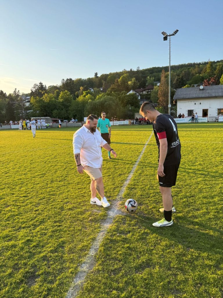 Für das Spiel der Kampfmannschaften übernahm Gerald Fischer (Städtische Bestattung St. Pölten) die Spielpatronanz und nahm den Ehrenankick vor.