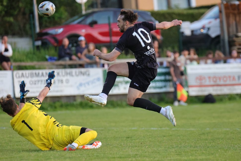 In der ersten Spielhälfte taten sich unsere Burschen noch schwer, dann aber in der 2. Hälfte zündeten sie das Torfeuerwerk. In der 49.Minute traf Maxi Kranz zum 1:0, 5 Minuten später setzte er zum 2:0 nach. Wiederum nur 2 Minuten danach verwandelte Oleh Yelets eine Elfmeter sicher zum 3:0. In der 63. Spielminute schießt Daniel Brauner zum 4:0 ein.