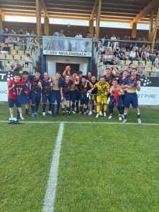 Für die Kampfmannschaft erweist sich Neulengbach als fairer Gastgeber und geleitet unsere Burschen mit durch ein Spalier und mit Glückwünschen zum Meistertitel aufs Spielfeld.